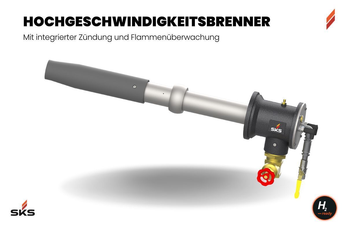 SKS Hochgeschwindigkeitsbrenner sind speziell für industrielle Anwendungen konzipiert, die höchste Anforderungen an Temperatur, Effizienz und Prozesssicherheit stellen. Mit elektrischer Hochspannungszündung und integrierter Flammenüberwachung gemäß DIN EN ISO 13577-2 gewährleisten sie einen sicheren und zuverlässigen Betrieb in Hochtemperaturprozessen.